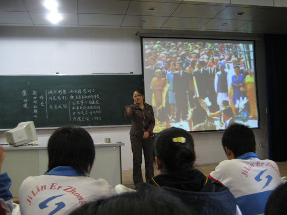 2007年12月1日上午,国家级高中新课改研讨会在我校召开,人民教育出版社培训办主任宋晓雁、编辑辜翔宇、吉林省教材出版公司总编辑高长声、吉林省教育学院主任张秉年、吉林市教育学院副院长金清玉及吉林一中、吉林二中、毓文中学等我市各中学校长参加会议并发言。