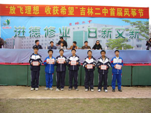 我校今天下午成功举行了"放飞理想,收获希望"吉林二中首届风筝节,团市委学校部、教育局团委领导应邀参加了开幕式,并观看了学生放
