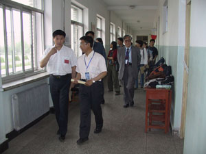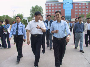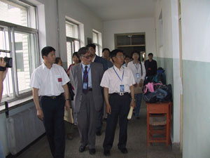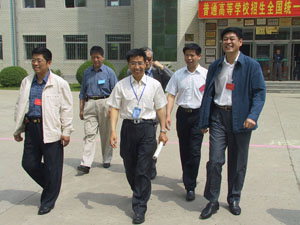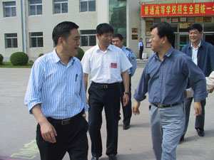 在高考期间,市委常委市政法委书记市公安局局长刘培柱和杨市长分别对我校的考场进行视察.
