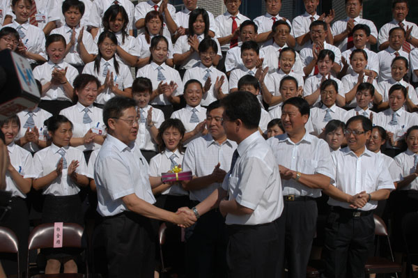 个教师节前夕,省委常委、市委书记徐建一,市委常委、市委秘书长李向东,副市长杨金顺,市教育局局长佟剑秋等领导来到我校慰问教师,各位领导参加了升旗仪式,参观了校园文化建设,徐建一向优秀教师颁发了慰问金,并向全体教师赠送健康体检卡。