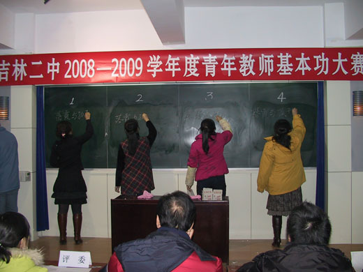 2008年12月10日,我校青年教师协会举办了大练教学基本功之两笔字比赛,七十余青年教师参加了比赛其中谭哲等10名青年教师获得一等奖,刘放等20名教师获得二等奖。
