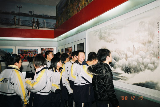 2008年12月18日、19日,我校全体党员、党员积极分子教师及高一、高二学生一千三百余人到吉林市博物馆参观了“吉林市纪念改革开放30周年书法、美术、摄影展”。通过为时一个小时的参观,使学生们开阔了眼界,了解到改革开放三十年里吉林市的诸多变化。在参观活动中,新老江城图片的对比展区尤为引人关注,同学们纷纷驻足观看,不少同学还在展区前合影留念。学生们纷纷表示这些瞬间将永远珍藏在记忆之中,并为建设家乡下一个三十年而努力学习。