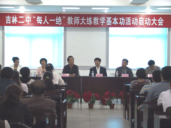 9月17日,吉林二中召开了“每人一绝”教师大练教学基本功活动启动大会。市教育局师资培训处处长张文华,市教育学院副院长金清玉应邀出席了会议。