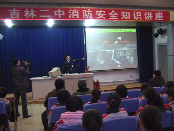 为了增强全校师生员工的消防安全意识, 2009年3月25日下午,我校邀请省公安厅消防宣传中心于教官为做了一场“消防安全知识”讲座。全体教工及部分班级学生在中心会场——演播厅,其他学生在班级收听、收看了讲座。