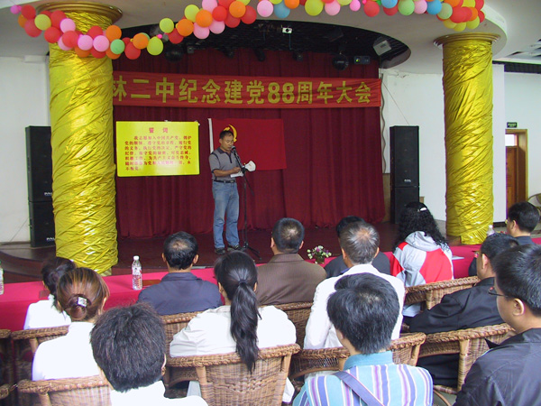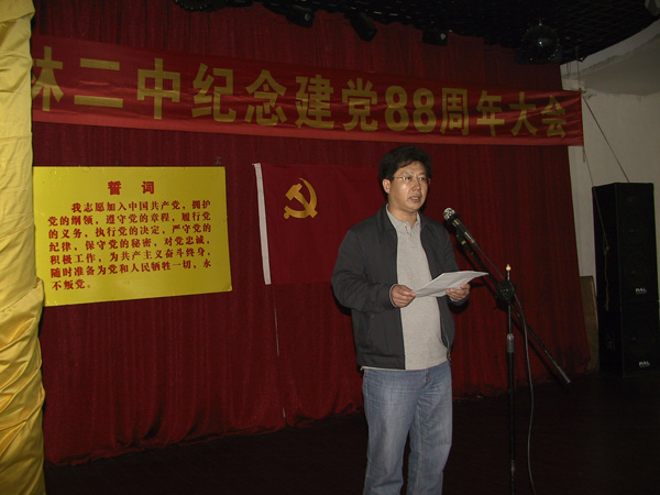 我校召开了纪念建党88周年大会,大会有齐林忠校长主持,左英凯书记做了精彩讲话。
