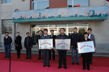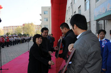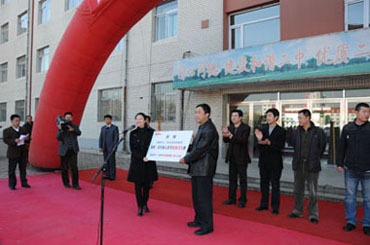 仪式上,雷大伟副总经理、邱阳助理、冯明杰总经理向受赠的市二中、市二实验、市朝小3所学校赠送了“爱心学校”牌匾及支票。
