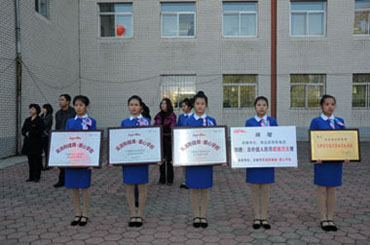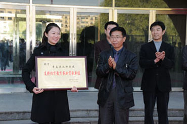 仪式的最后,杨金顺副市长授予吉林省英派斯健身健康管理有限公司张歌总经理支持体育教育事业“贡献单位”牌匾。