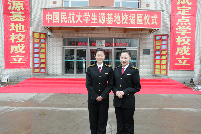| 中国民航大学空中乘务专业2名毕业生和我校2名学生担任揭牌仪式礼仪 |