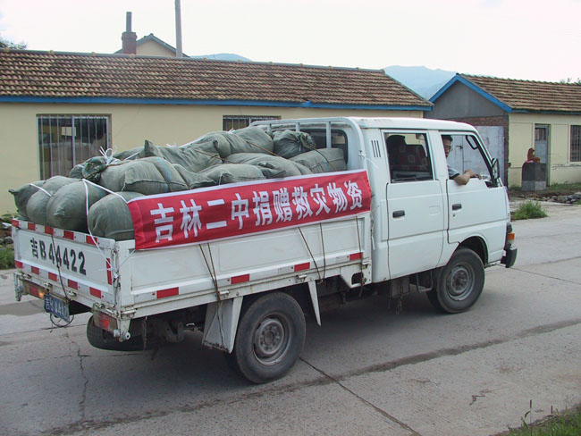 8月23日上午,由校长、工会主席和部分教师代表组成的“吉林二中慰问团”乘车将捐赠衣物运至吉林市丰满区旺起镇漂尔村,当地干部和群众表示非常感谢,并向我们介绍了该村的受灾情况,当地共有居民356户,总人口1365人,本次共有280户居民,1000余人受灾,房屋和农田均被不同程度的冲毁。现正在进行灾后重建工作,灾民已基本安置妥当。