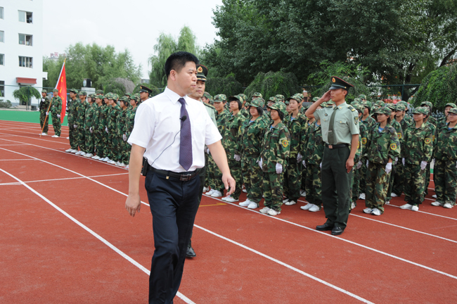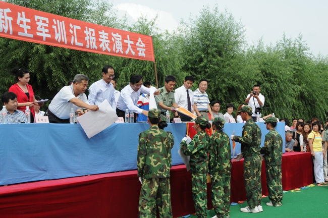 表演的最后,党委书记左英凯做了重要讲话。讲话中,肯定了同学们在短短8天内取得的优异成绩,赞扬了同学们不怕艰辛,不畏酷暑,迎难而上的顽强意志品质。感谢教官们认真作训和几天来的辛苦。
