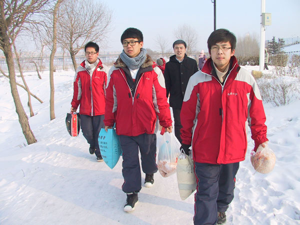 2011年1月14日,吉林二中组织部分学生代表冒着零下29度的严寒,将2000余斤鸟粮捐至我市长白岛!
