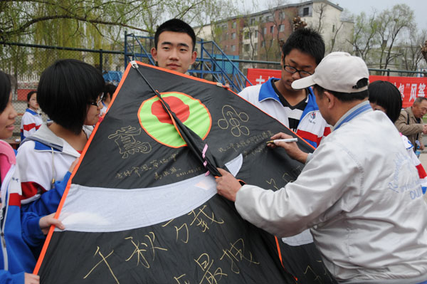 比赛场上,各支代表队将签写着理想的风筝放飞,空中飞翔的风筝彰显个性,尽显风采。在评委会的公平裁判下,本次赛会评出了一、二、三等奖。赛后学生们在谈比赛感受时说到:“虽然是比赛,但名次并不是最重要的,我们更重视比赛中的乐趣,每一架风筝都寄托着全班同学的梦想,希望我们的梦想能够成真,希望全班同学都能顺利的步入大学校园,也祝愿我们的班级、我们的学校越飞越高,越飞越强!”