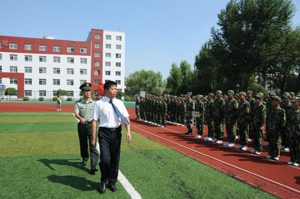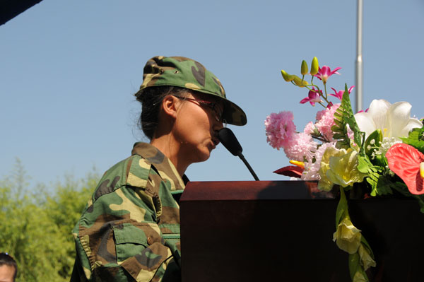 表演的最后,党委书记兼德育副校长左英凯做了重要讲话。讲话中,肯定了同学们在短短12天内取得的优异成绩,赞扬了同学们英勇顽强,艰苦卓绝的精神,不怕艰辛,不畏酷暑,迎难而上的顽强意志品质。感谢教官们认真作训和几天来的辛苦。