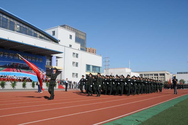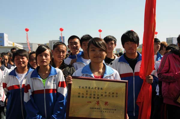 在开幕式上,来自全市28所高中和职业学校的学生,身着各式军装,整齐列队,依次通过主席台,接受领导们的检阅。吉林二中123名学生组成的检阅队伍,手持仿真枪,着装整齐,步伐一致,口号响亮,精神饱满,博得领导们热烈掌声,评委们的一致好评,获“军训阅兵第一名”。 |