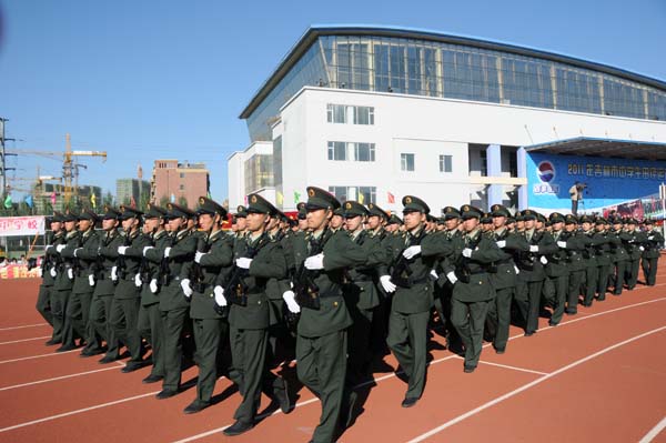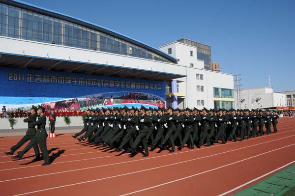 | 9月19日,“2011年市中学生田径运动会暨学生军训阅兵展示大会”在吉林一中体育场拉开帷幕。市领导谢忠岩、杨金顺、吕桂茹、徐学辉出席开幕式。本届运动会历时3天,共有43所学校的843名运动员和123名裁判员参与赛事,是近年来规模最大、项目设置最多、参赛人数最多的一届运动会。
