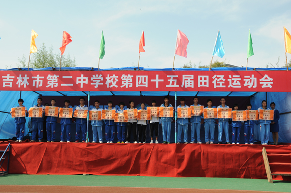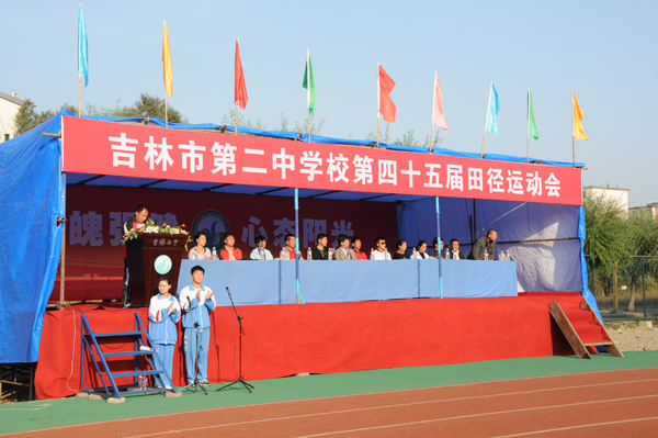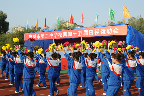 2011年9月27日、28日,吉林二中继获得市运动会“高中乙组团体总分”第一名和“军训阅兵展示”第一名之后,在学校田径场隆重举行了第45届运动会。校长齐林忠、党委书记左英凯分别致开幕词和闭幕词。本届运动会是吉林二中“新健康教育”成果的展现,体育教学工作的展示,师生精神风貌和综合素质大检阅。