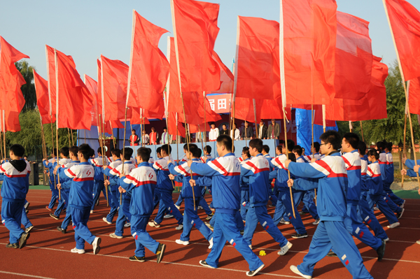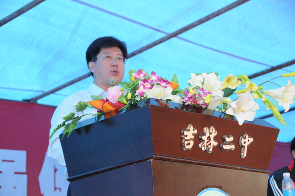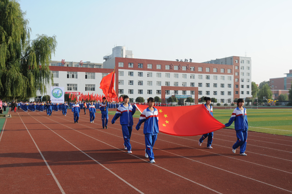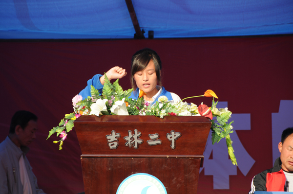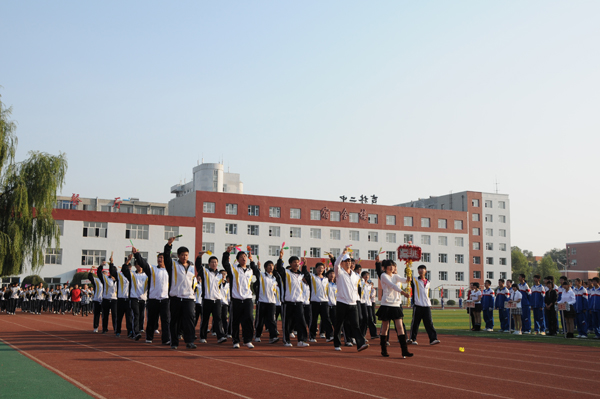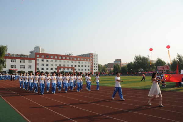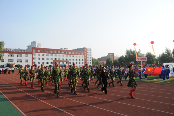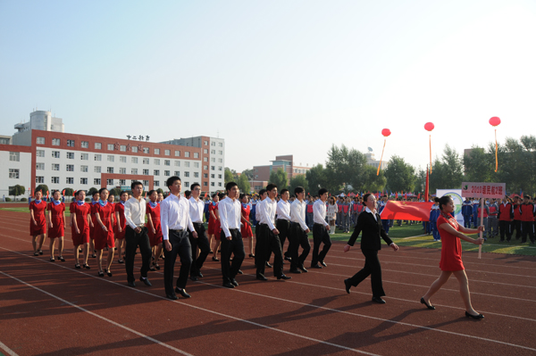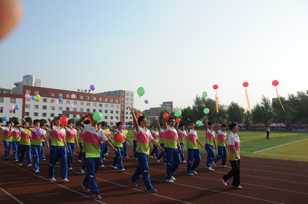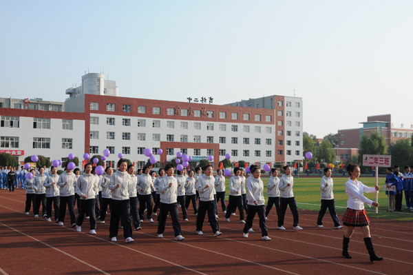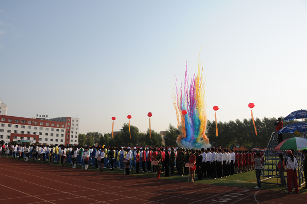 副校长刘金玉宣布运动会开幕,21门礼炮齐鸣,烟花绽放,吉林二中的检阅队伍伴随着运动员进行曲进入了会场。国旗护卫队气宇轩昂,校徽护卫队昂首阔步,花束队和刀旗队精神抖擞;教师队伍精神饱满,英姿飒爽;33个方队,队伍整齐,口号响亮,放飞了象征和平的鸽子和预示蒸蒸日上的气球。