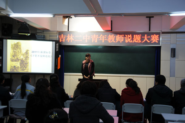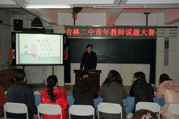 2012年10月29日—31日下午,吉林二中举行青年教师说题比赛活动。旨在鼓励青年教师不断学习和探究教育教学规律,创新教育理念,强化课堂教学的规范意识、质量意识和效率意识,进一步提高教师的教育教学水平,促进青年教师业务成长。