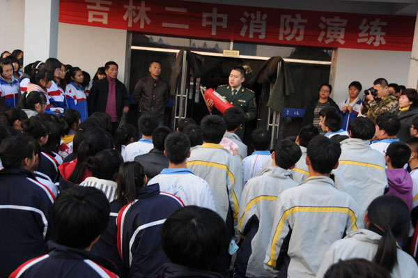 11月2日,吉林二中举行了题为“加强疏散演练,确保学生平安”消防疏散和救生演练。本次活动在高新消防大队官兵的鼎力配合下,对全校760余名住宿生进行了消防疏散和救生演练。旨在提高全体住宿生的安全意识,确保师生员工人身安全,构建平安校园。