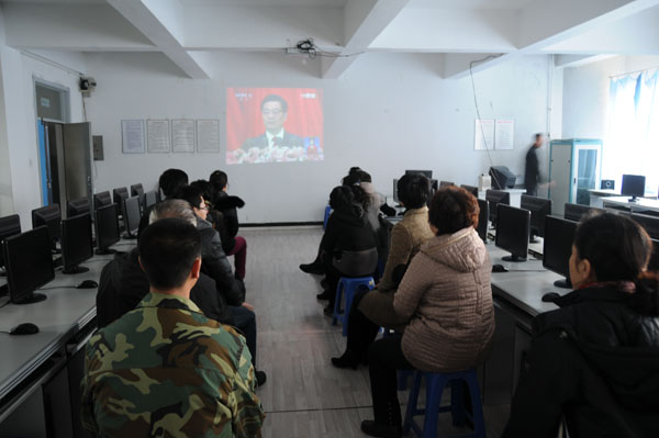 吉林二中组织党员教师观看十八大开幕式,要求党员教师认真听取报告,并领会会议精神。