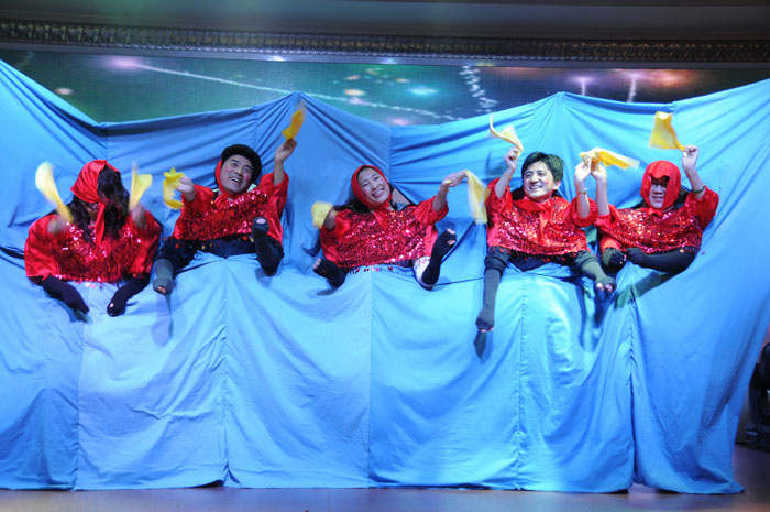 伴着舞蹈《欢聚一堂》,此次联欢会拉开了序幕,随后,由齐林忠校长与李春盈老师演唱《送给你》,把祝福送给在座的所有观众。物理组、生物组、语文组也相继表演了自创的三句半及歌伴舞等节目。刘金玉副校长的配乐诗朗诵《我是知青》,让观众们细细回味了红色革命年代的知青生活。数学组、体音美心组、政史地组、化学组、教务处、学生处、总务处也都献上了精彩的节目。联欢会在外语组的歌伴舞《珊瑚颂》中缓缓落下了帷幕。