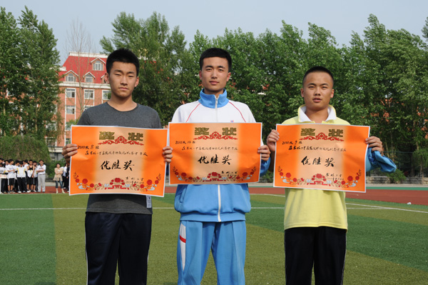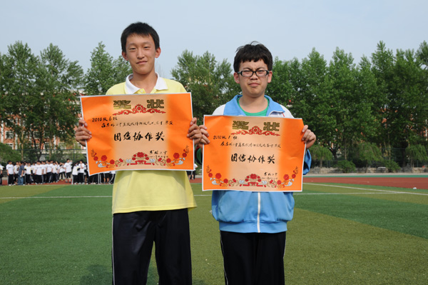 比赛中,每班12名队员(6男6女),绑住踝关节,一齐跑50米。气氛热烈有序,在整齐划一的步伐和口号声中,高一年级的七班、六班、二班分获冠、亚、季军;高二年级的十一班、四班、三班分获前三名。比赛还设置了优胜奖,由高一年级的一班、十班、八班和高二年级的十三班、八班、九班获得;高一的十二班、五班和高二的一班、六班还分别获得了团结协作奖。